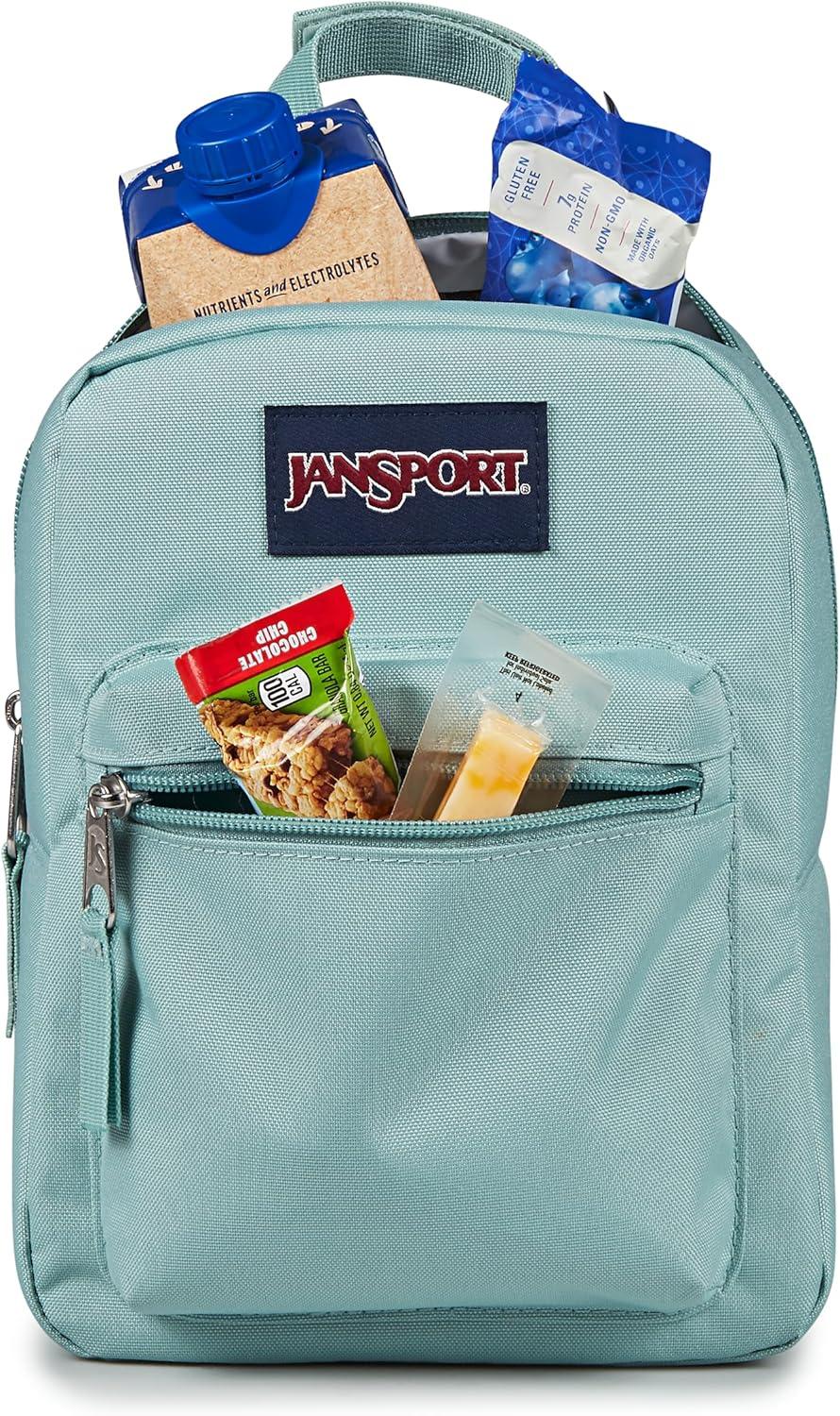 The JanSport lunch break insulated bag has a zippered pocket for utensils and napkins, and comes in colors and patterns that match your backpack and style.
