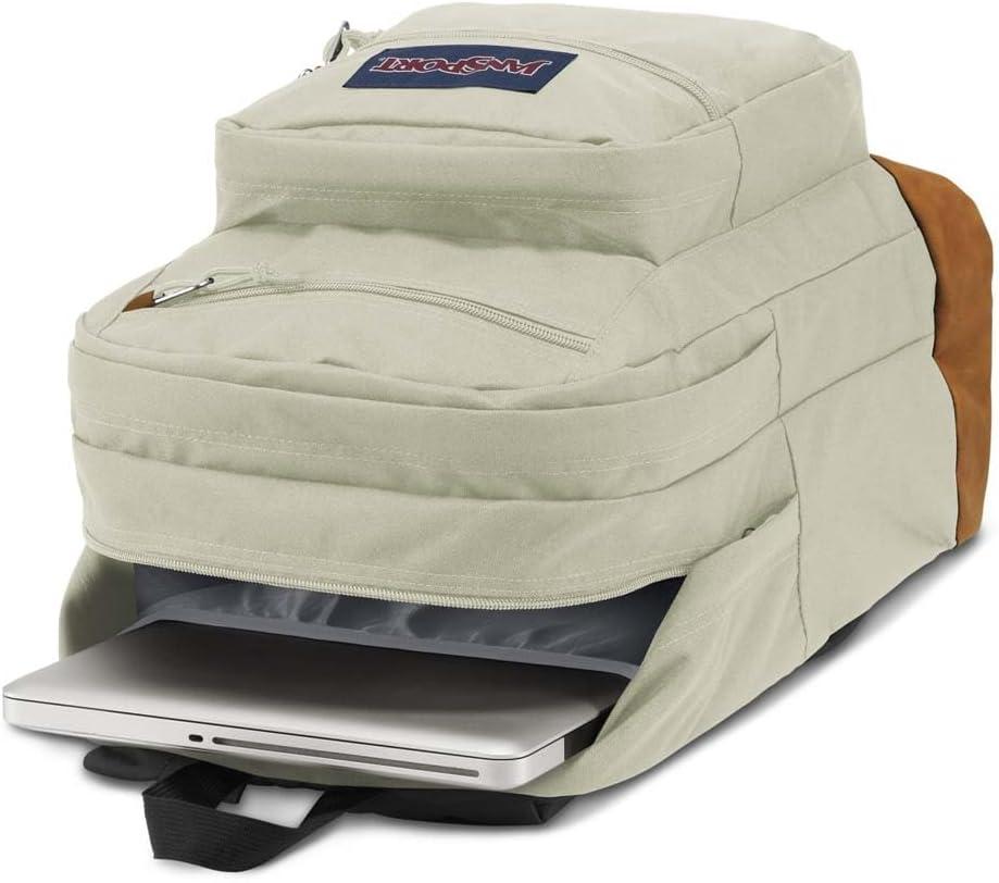 JanSport Cool Student Backpack – All the great features of our Big Student, plus a sleeve for a 15 inch” laptop and synthetic leather base trim. Go ahead, say it: That's cool. EXTRA LARGE CAPACITY – Plenty of space to stash lots and lots of stuff. WATER BOTTLE POCKET – Stay hydrated on your daily adventures. PREMIUM DETAILS – A little something special went into this pack . Ergonomic S-curve shoulder straps, Fully padded back panel, Side water bottle pocket, Internal 15'' laptop sleeve, Cord pullers, Two large main compartments, Pleated front stash pocket, Web haul handle, Premium synthetic leather bottom and trims. CAPACITY: 2100 cu in / 34 L, DIMENSIONS: 17.5″ x 13″ x 10″ / 43 x 33 x 25 cm, FABRIC: 600 Denier Polyester / Synthetic Leather, WEIGHT: 1 lb 5 oz / 0.6 kg, LAPTOP DIMENSIONS: 13.4″ x 11.8″ x 1″ / 34 x 29 x 3 cm
