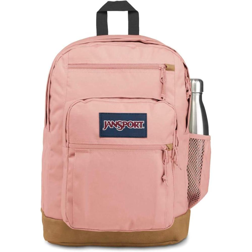 JanSport Cool Student Backpack – All the great features of our Big Student, plus a sleeve for a 15 inch” laptop and synthetic leather base trim. Go ahead, say it: That's cool. EXTRA LARGE CAPACITY – Plenty of space to stash lots and lots of stuff. WATER BOTTLE POCKET – Stay hydrated on your daily adventures. PREMIUM DETAILS – A little something special went into this pack . Ergonomic S-curve shoulder straps, Fully padded back panel, Side water bottle pocket, Internal 15'' laptop sleeve, Cord pullers, Two large main compartments, Pleated front stash pocket, Web haul handle, Premium synthetic leather bottom and trims. CAPACITY: 2100 cu in / 34 L, DIMENSIONS: 17.5″ x 13″ x 10″ / 43 x 33 x 25 cm, FABRIC: 600 Denier Polyester / Synthetic Leather, WEIGHT: 1 lb 5 oz / 0.6 kg, LAPTOP DIMENSIONS: 13.4″ x 11.8″ x 1″ / 34 x 29 x 3 cm