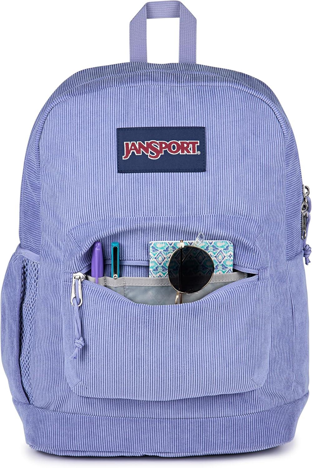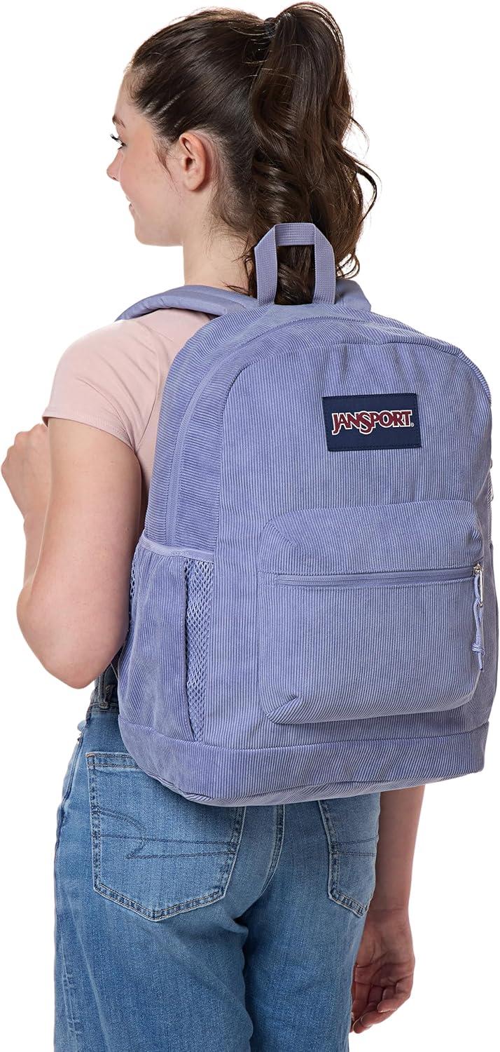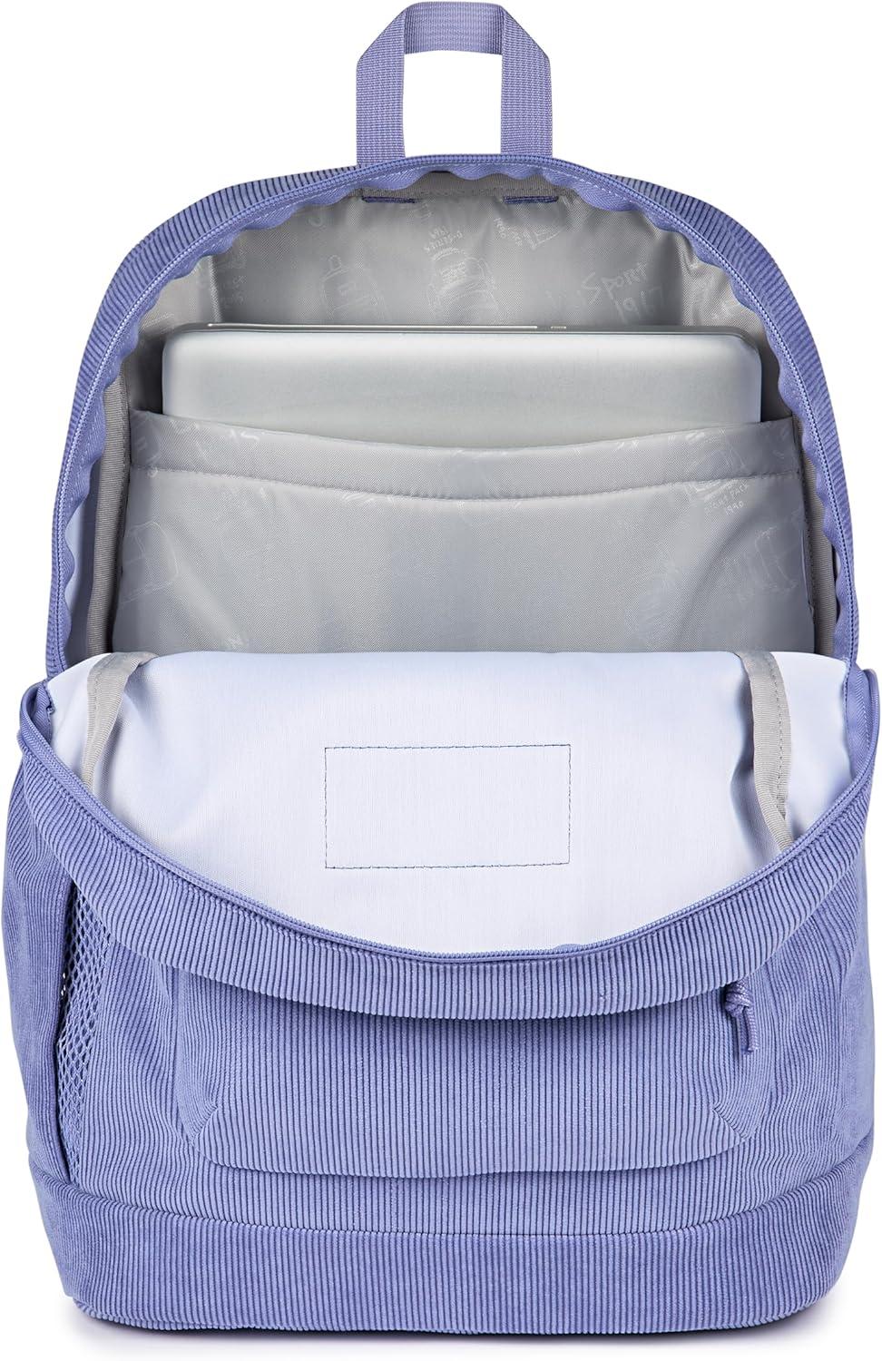 JanSport Cross Town Plus Remix Backpack – Padded Back Panel, Laptop Sleeve, and Front Pocket Organizer – Indigo Denim(Lavender Ash Corduroy)
