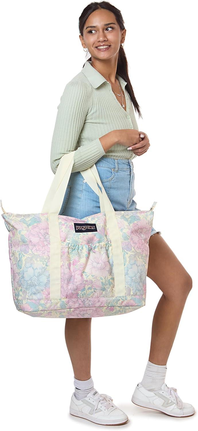 JanSport Daily Tote – Spacious and Durable Tote Bag with Front Drop Pocket, Padded Bottom Boot, and Dual Webbing Shoulder Handles Elevate your daily routine with the JanSport Daily Tote, a stylish and practical bag designed to meet all your carrying needs. This tote combines functionality with a sleek design to ensure you stay organized and prepared for any activity. Dimensions: Measuring 13.5″ x 18″ x 7″, this tote provides a generous amount of space without compromising on style. It’s the ideal size for carrying your essentials, whether you're heading to work running errands. The Daily Tote features a large main compartment that offers ample space to fit groceries or personal items, making it versatile for various uses. For added convenience, the tote includes a front drop pocket, perfect for quick-access items like your phone, keys, or wallet. This thoughtful design ensures that you can easily reach important items without rummaging through the main compartment. Dual webbing shoulder handles provide comfort and durability, allowing for easy carrying whether you’re using the tote for your daily commute or a day out. The padded bottom boot not only adds a layer of protection to your belongings but also enhances the tote’s durability, making it a reliable choice for everyday use. Secure your items with the zippered main closure, which keeps everything safely contained. Inside, the internal stash pocket offers an organized space for smaller items, so you can easily find what you need. Additionally, corded zipper pulls add a touch of style and functionality to the tote, ensuring smooth and easy access to your belongings. Disclaimer: This product is intended for persons 13 years of age and older. Choose the JanSport Daily Tote for its combination of practical features and stylish design.