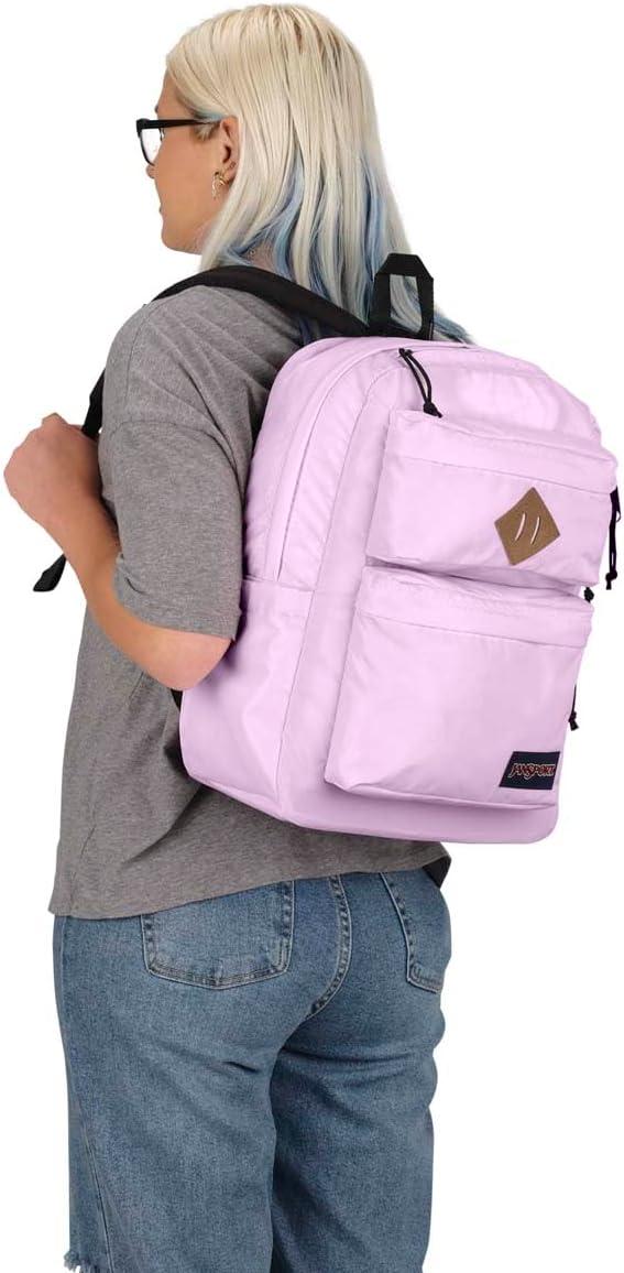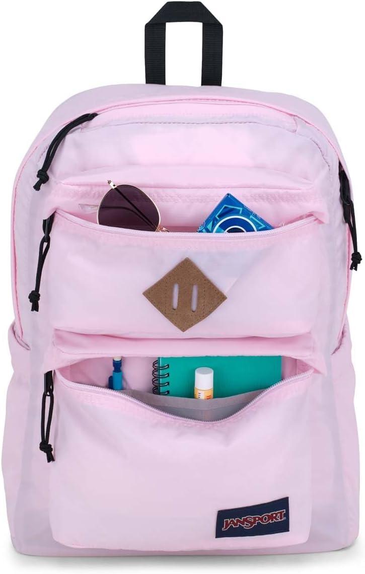 JanSport Double Break Backpack – 15-inch Padded Laptop Compartment, Dual Water Bottle Pockets, Internal Organizer, Large Main Compartment, Cargo Green(Pink Ice)