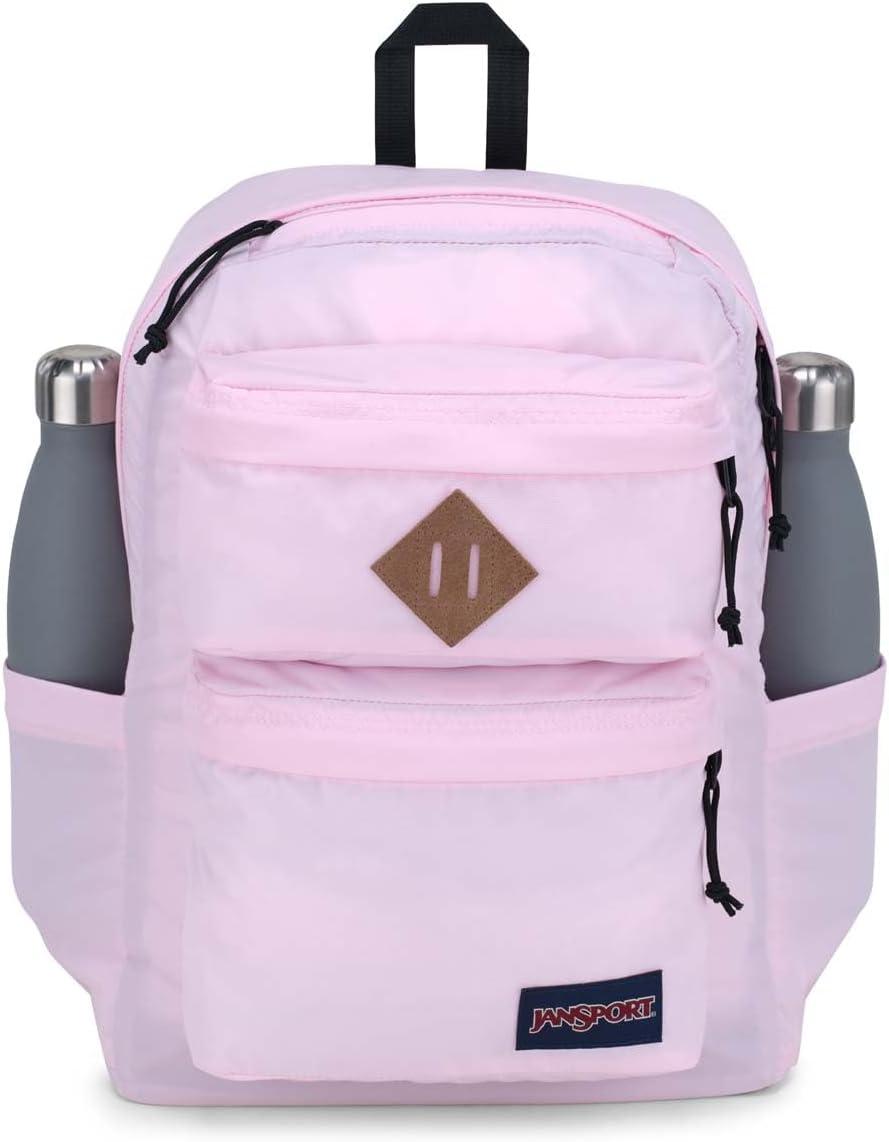 JanSport Double Break Backpack – 15-inch Padded Laptop Compartment, Dual Water Bottle Pockets, Internal Organizer, Large Main Compartment, Navy(Pink Ice)