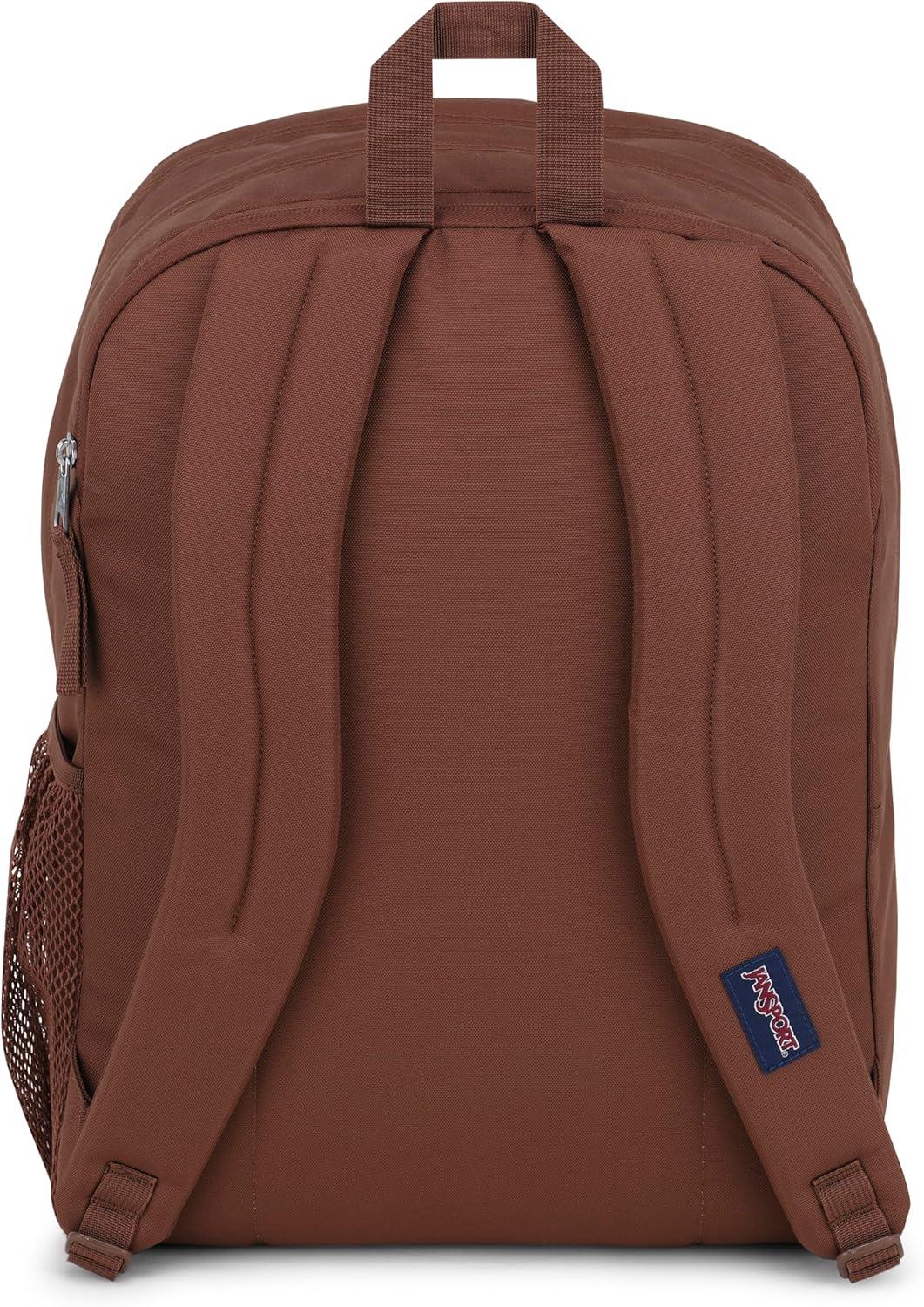 These extra-large capacity backpacks feature 2 large main compartments and a dedicated, padded 15-inch laptop sleeve. This pack is designed for comfort, with ergonomic S-curve shoulder straps and a fully padded back panel. Also features a front utility pocket with an organizer, a side water bottle compartment, and a zippered front stash pocket, ensuring you always stay organized with these spacious and convenient backpacks. At JanSport, we have been engineering high-quality, durable and reliable products since 1967, and we stand behind our large laptop backpack. This backpack for a laptop has been carefully designed to provide unmatched functionality, convenience and utility. Product Details: Backpack Materials: 100% Recycled 600d Polyester Main Body Fabric, Size: 17 x 13 x 7.5 inches, Capacity: 34 L.