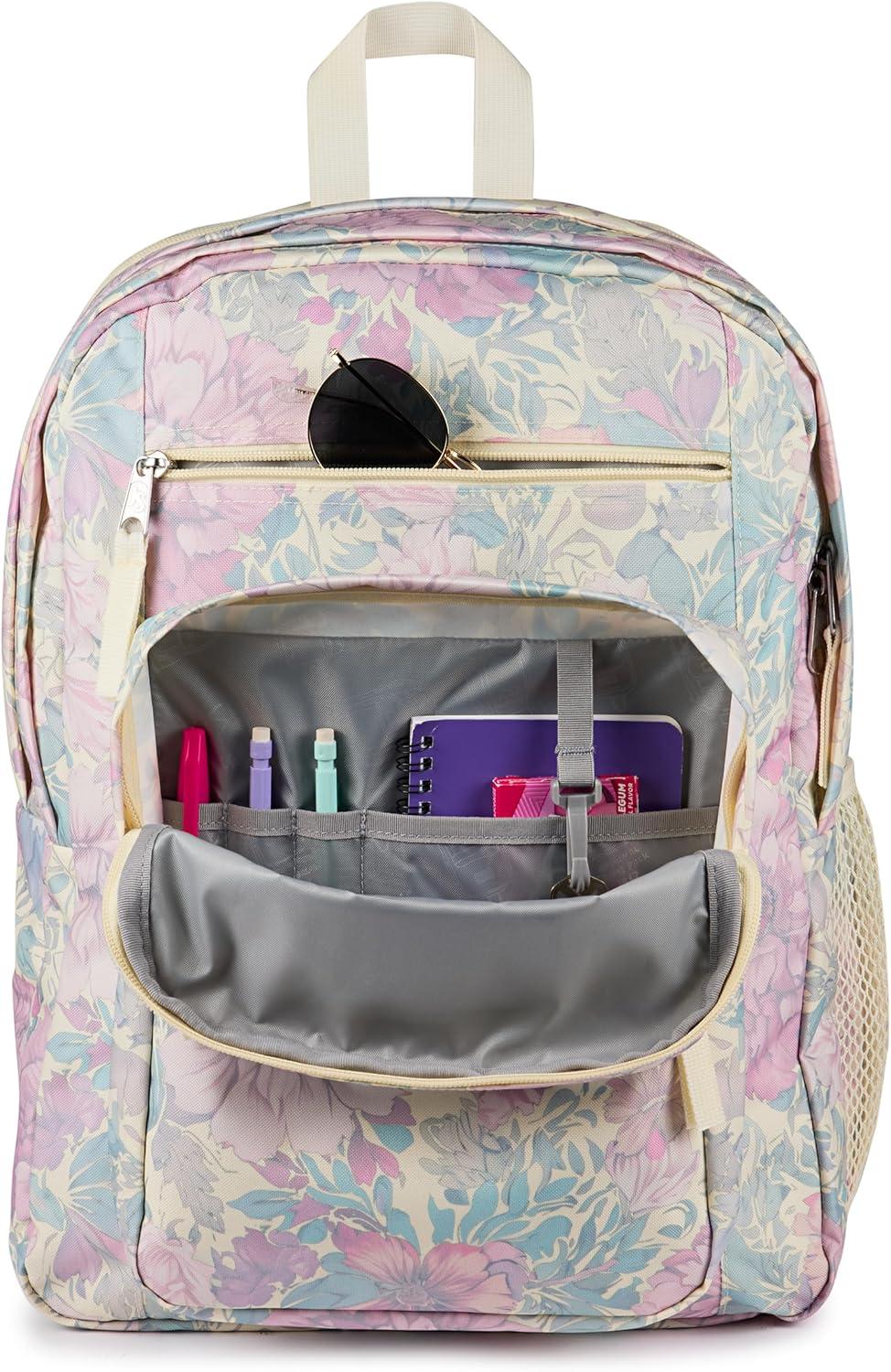 These extra-large capacity backpacks feature 2 large main compartments and a dedicated, padded 15-inch laptop sleeve. This pack is designed for comfort, with ergonomic S-curve shoulder straps and a fully padded back panel. Also features a front utility pocket with an organizer, a side water bottle compartment, and a zippered front stash pocket, ensuring you always stay organized with these spacious and convenient backpacks. At JanSport, we have been engineering high-quality, durable and reliable products since 1967, and we stand behind our large laptop backpack. This backpack for a laptop has been carefully designed to provide unmatched functionality, convenience and utility. Product Details: Backpack Materials: 100% Recycled 600d Polyester Main Body Fabric, Size: 17 x 13 x 7.5 inches, Capacity: 34 L
