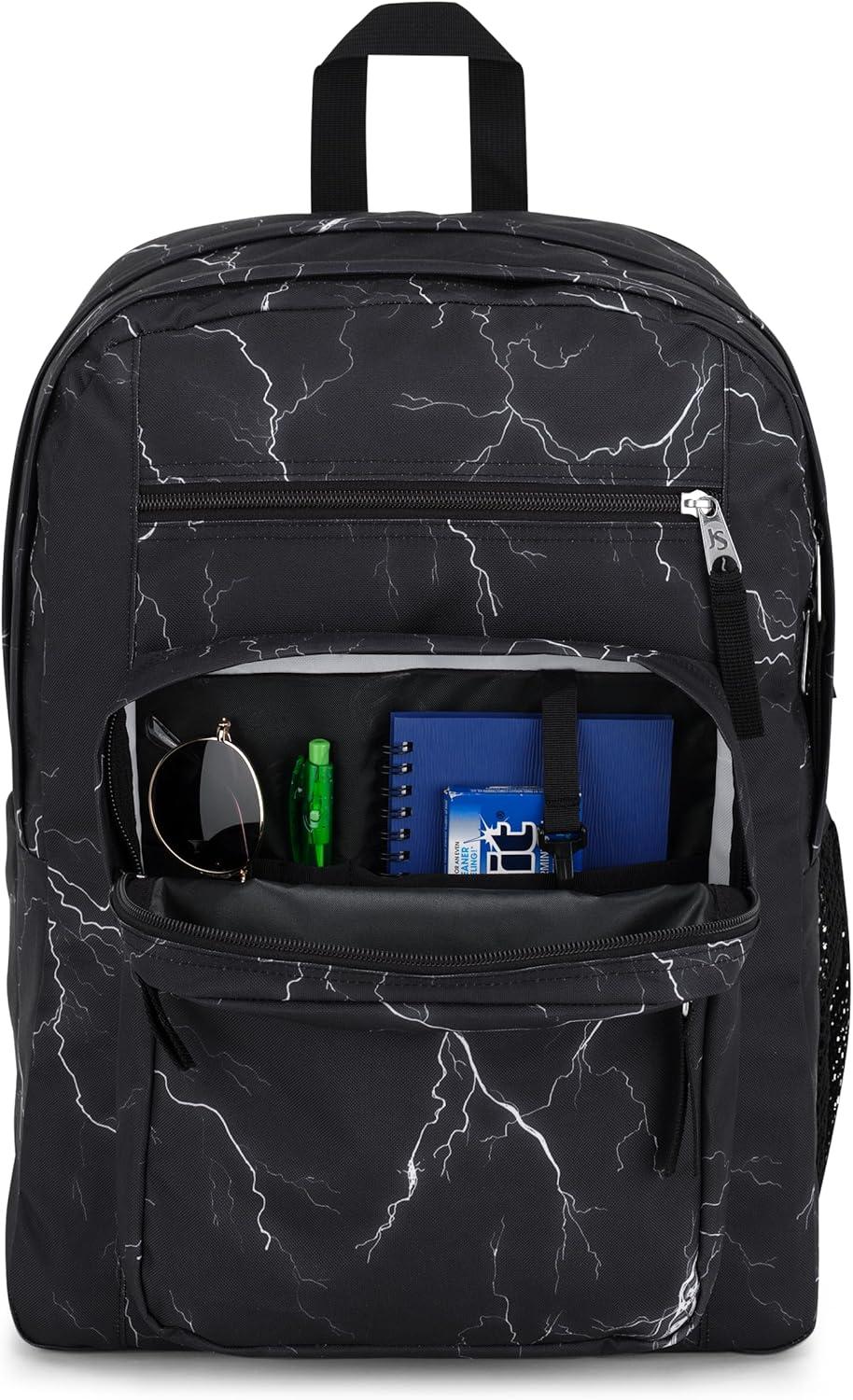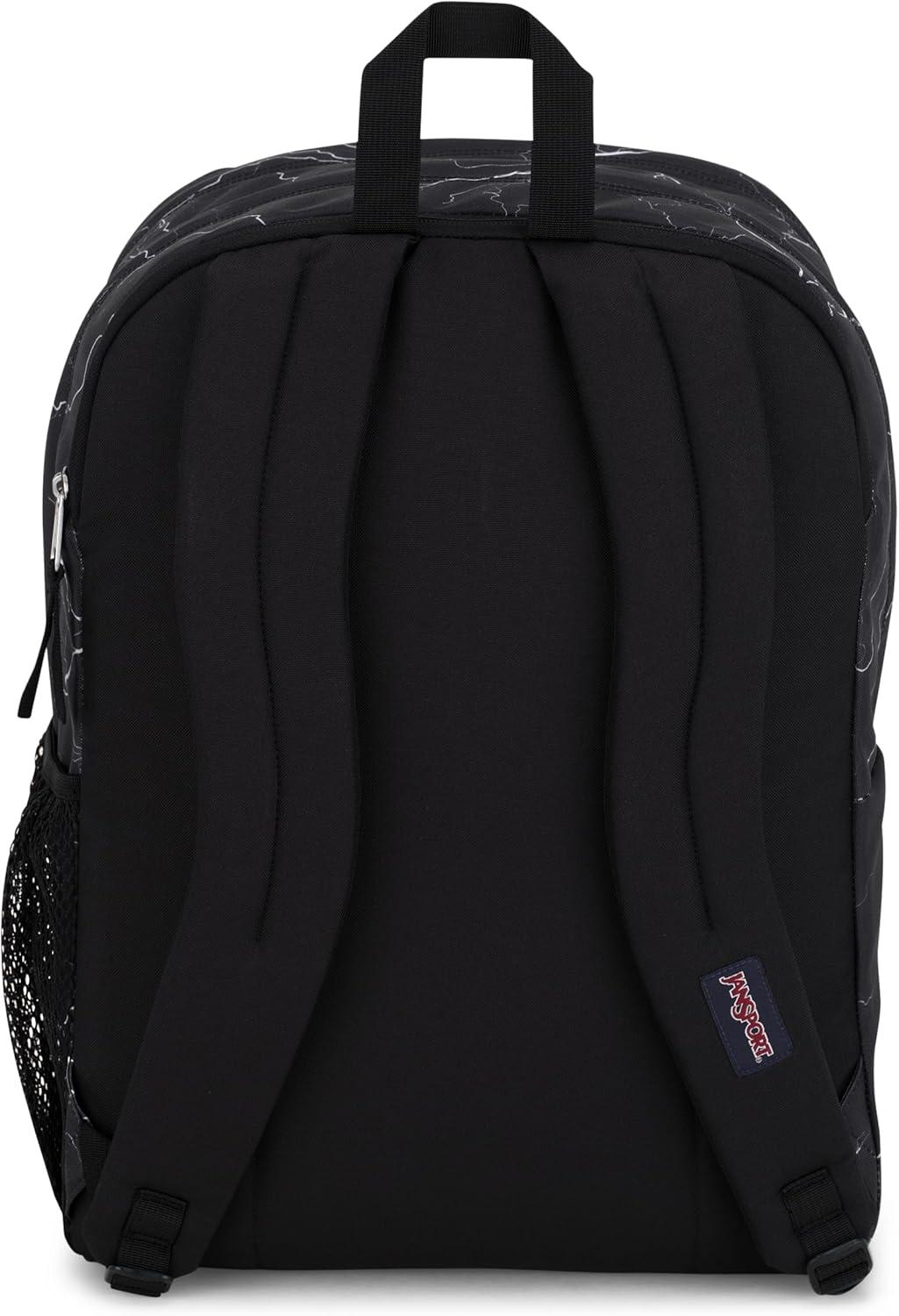 These extra-large capacity backpacks feature 2 large main compartments and a dedicated, padded 15-inch laptop sleeve. This pack is designed for comfort, with ergonomic S-curve shoulder straps and a fully padded back panel. Also features a front utility pocket with an organizer, a side water bottle compartment, and a zippered front stash pocket, ensuring you always stay organized with these spacious and convenient backpacks. At JanSport, we have been engineering high-quality, durable and reliable products since 1967, and we stand behind our large laptop backpack. This backpack for a laptop has been carefully designed to provide unmatched functionality, convenience and utility. Product Details: Backpack Materials: 100% Recycled 600d Polyester Main Body Fabric, Size: 17 x 13 x 7.5 inches, Capacity: 34 L.