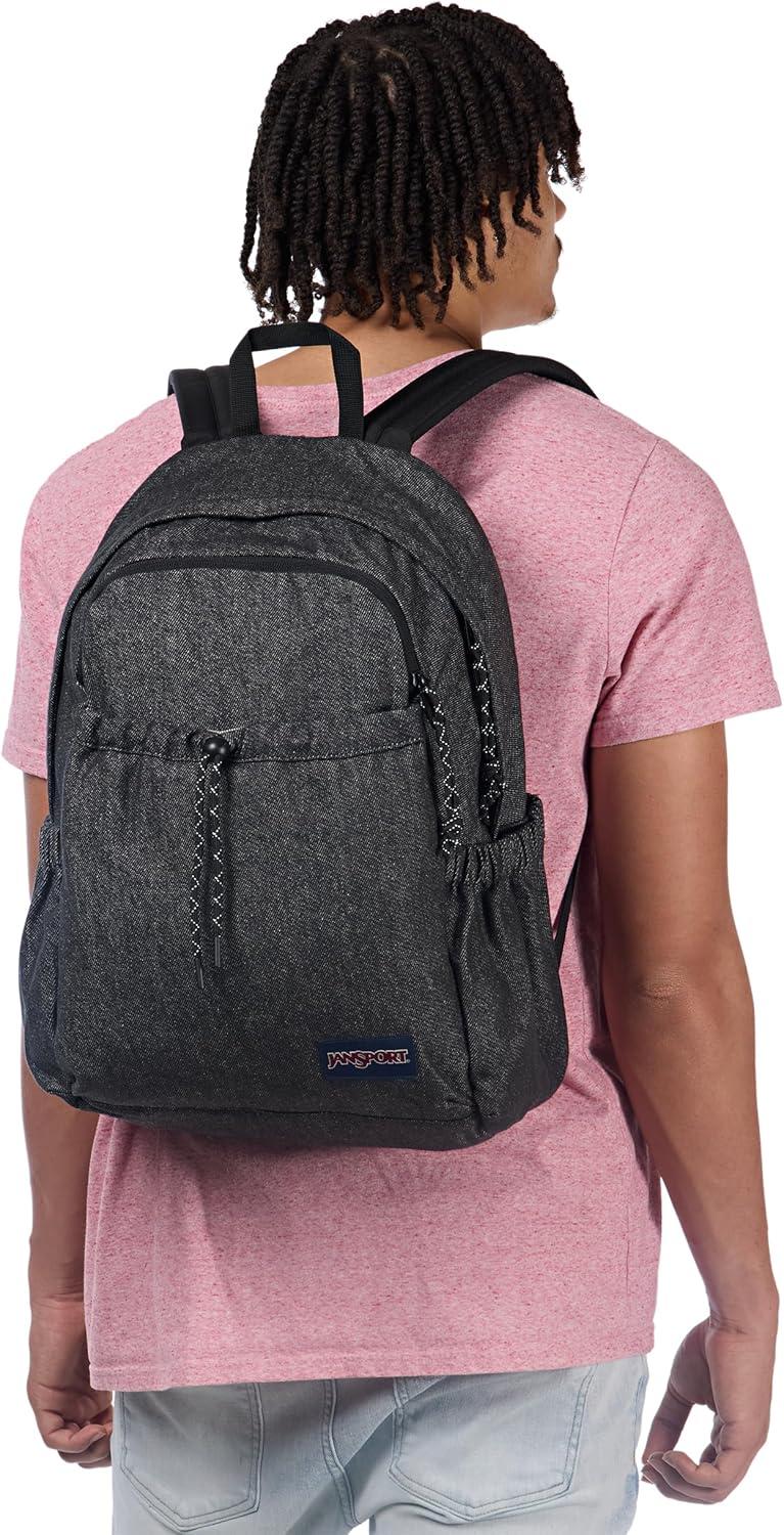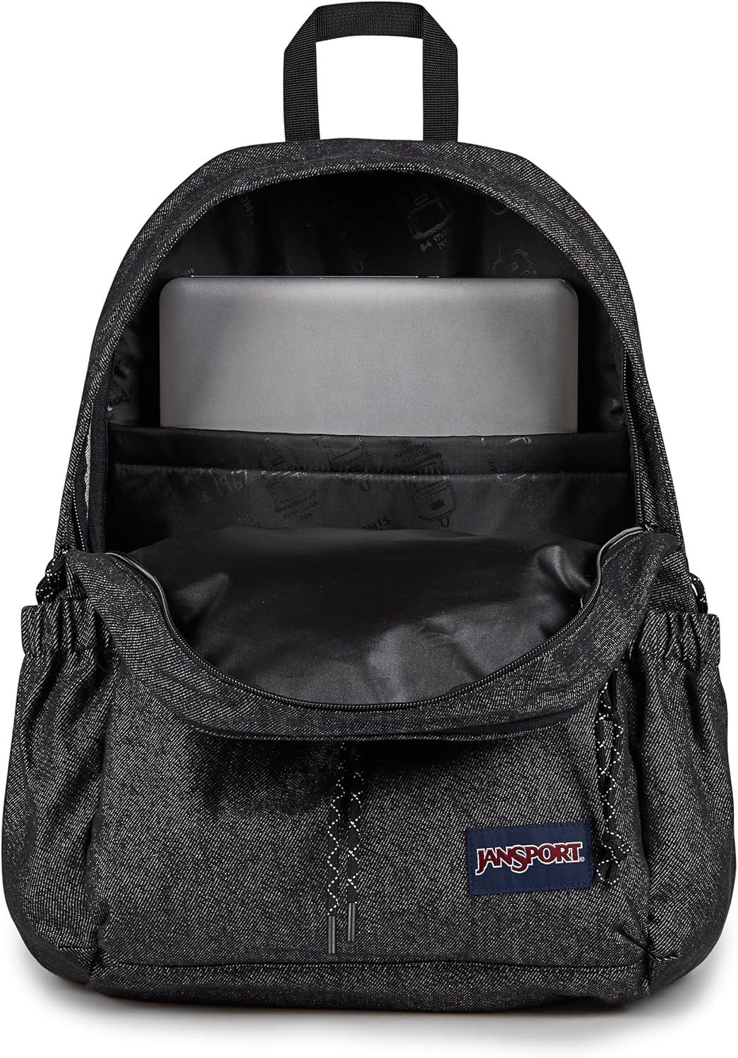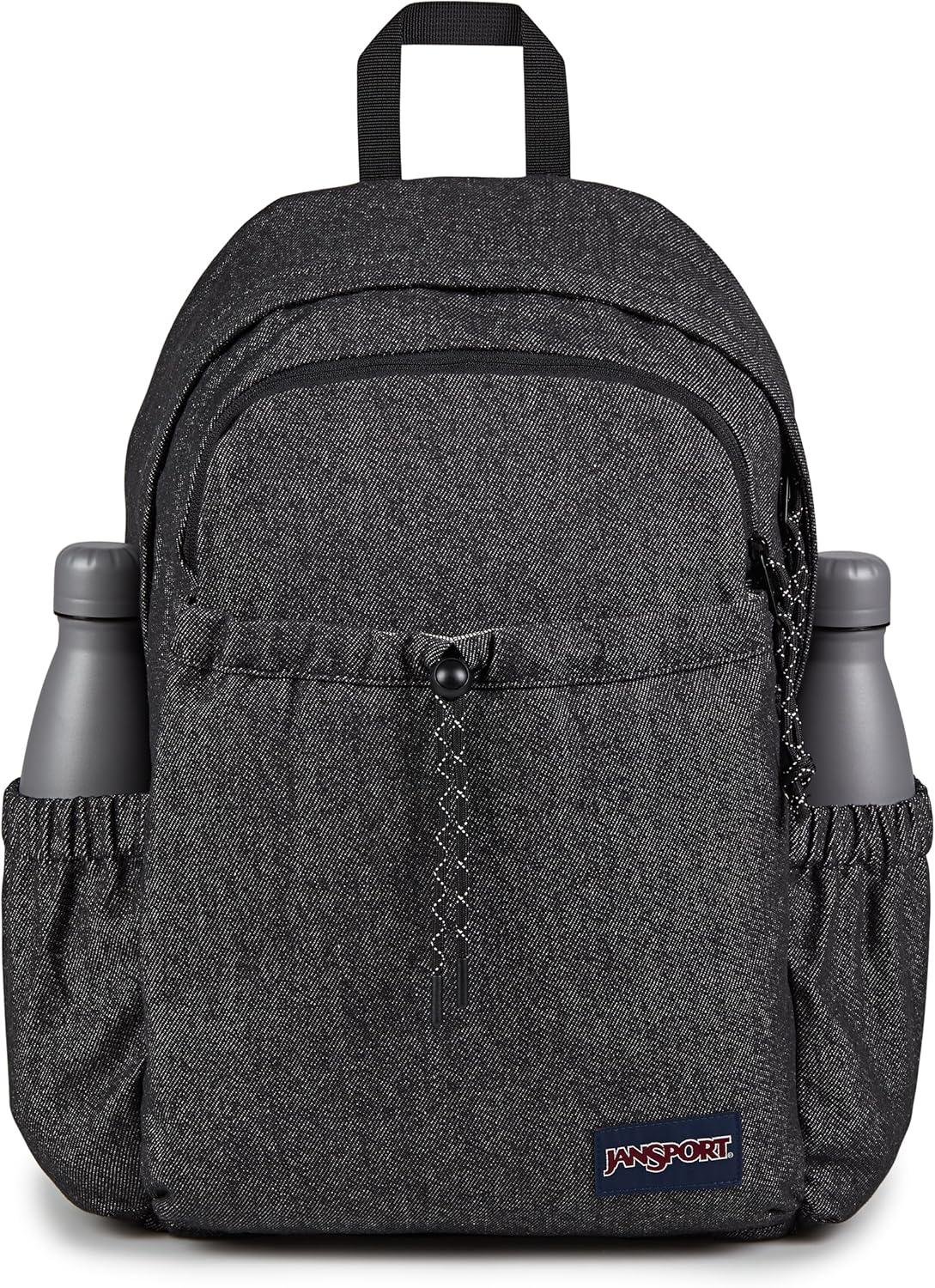 JanSport Lounge Pack FX – Large Main Compartment, Dual Water Bottle Pockets, Front Drawcord Pocket, Padded Laptop Sleeve, Black Corduroy(Black Denim)
