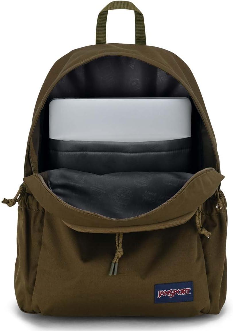 JanSport Lounge Pack – Large Main Compartment, Dual Water Bottle Pockets, Front Drawcord Pocket, Padded Laptop Sleeve, Oyster Mushroom(Army Green)