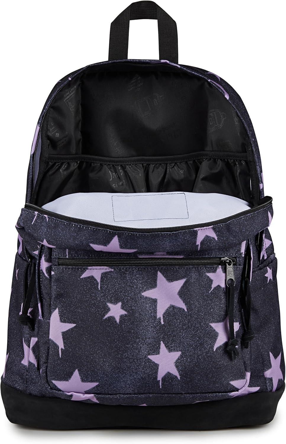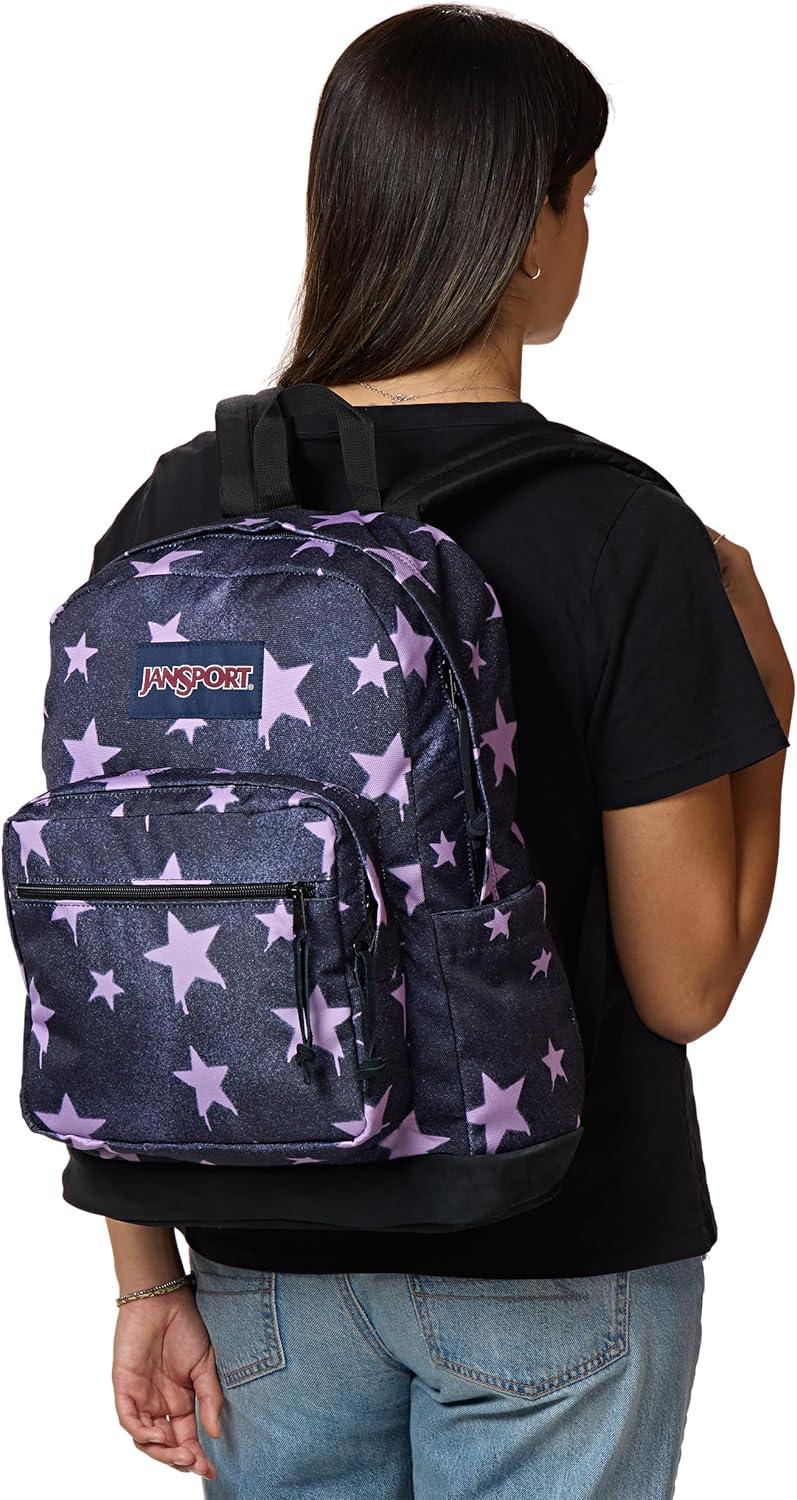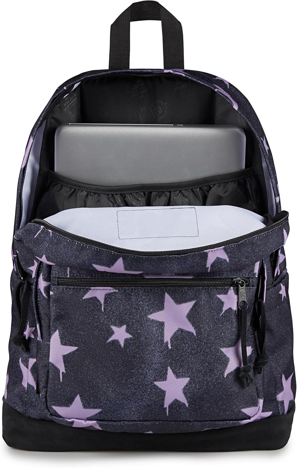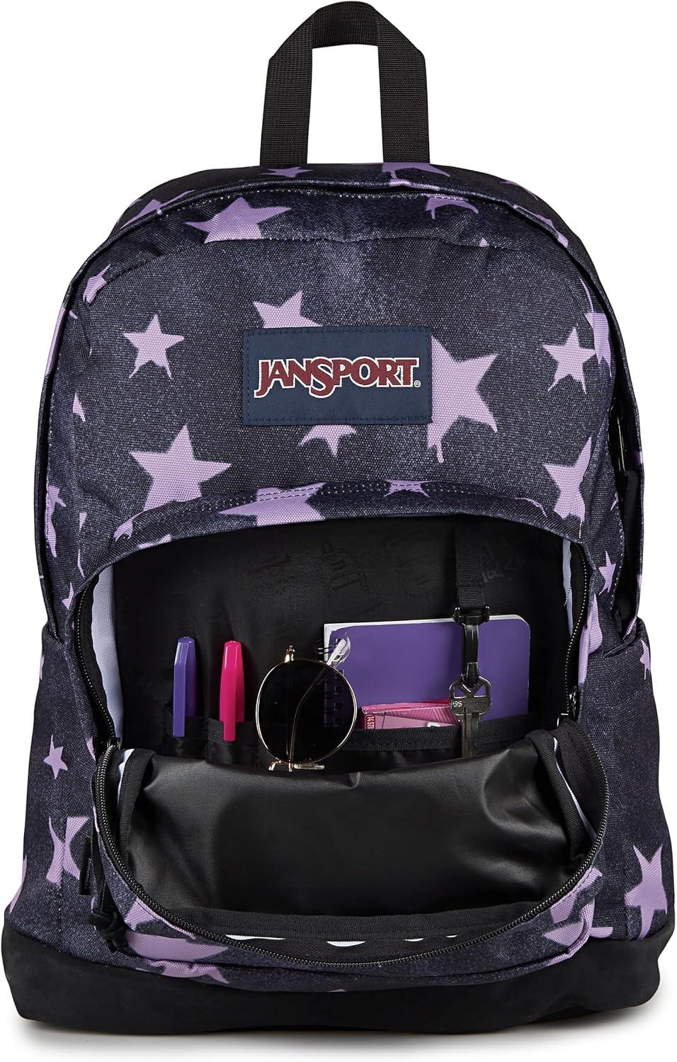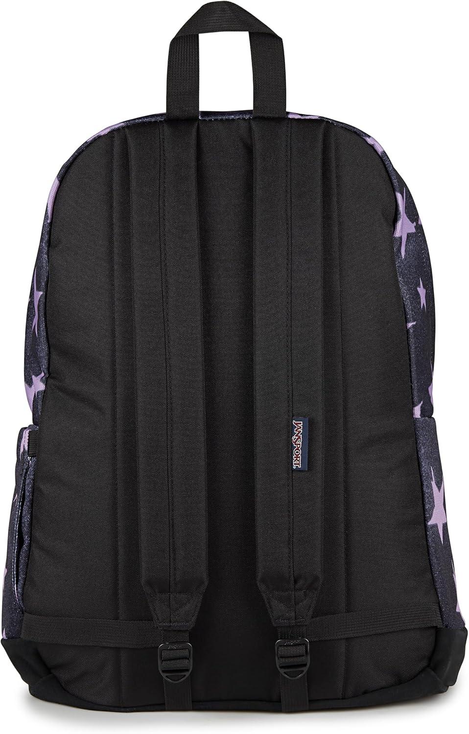 JanSport Right Pack Backpack – Durable Daypack with Padded 15″ Laptop Sleeve, Spacious Main Compartment & Integrated Water Bottle Pocket – Black(Sprayed Stars Pastel Lilac)