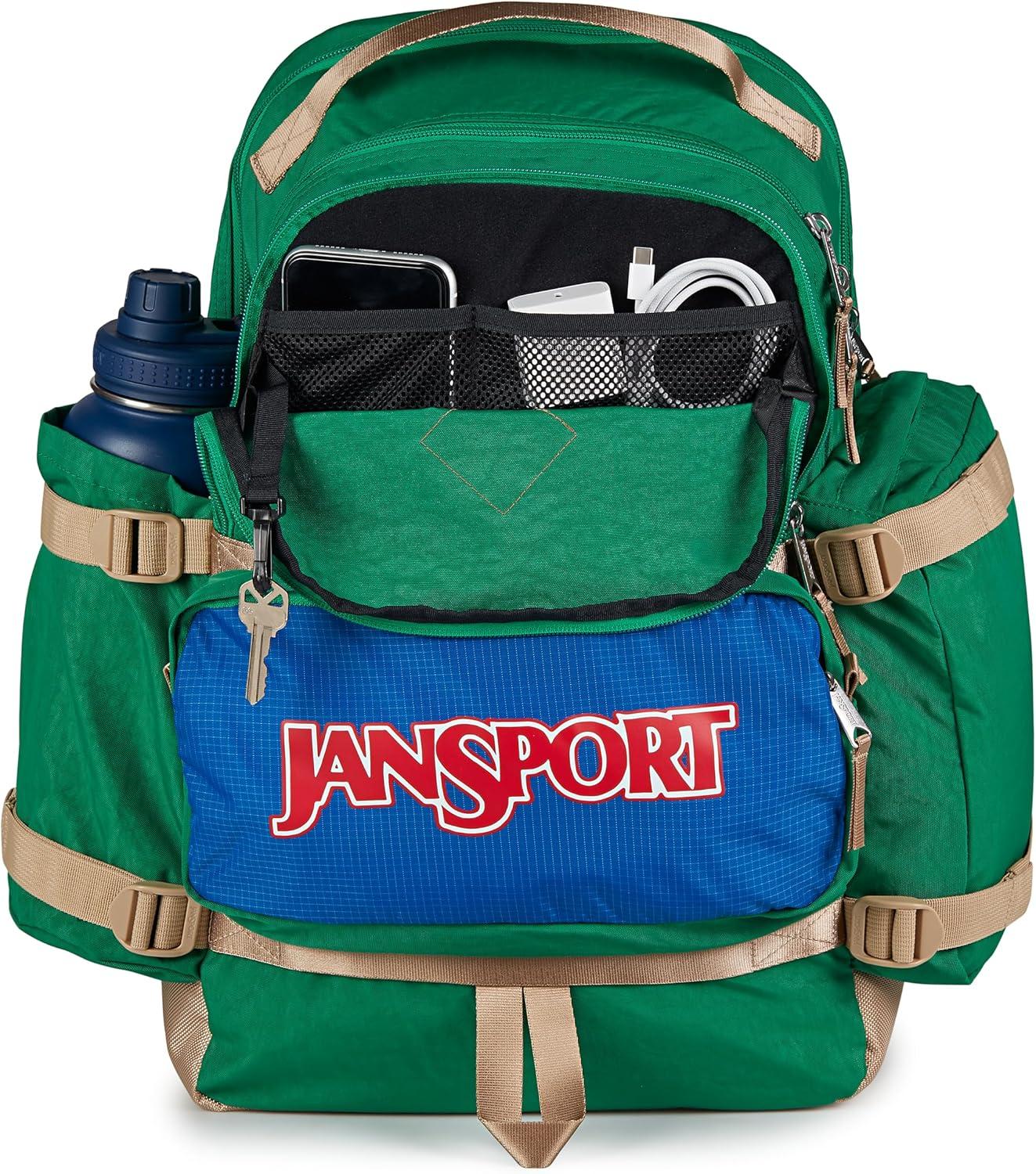 JanSport Seattle Pack – Durable Backpack with Main Compartment, Dual Water Bottle Pockets, and Zippered Plush Lined Laptop Compartment, Red Tape(Jelly Kelly)