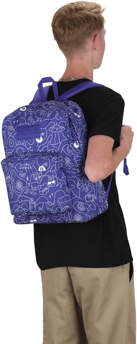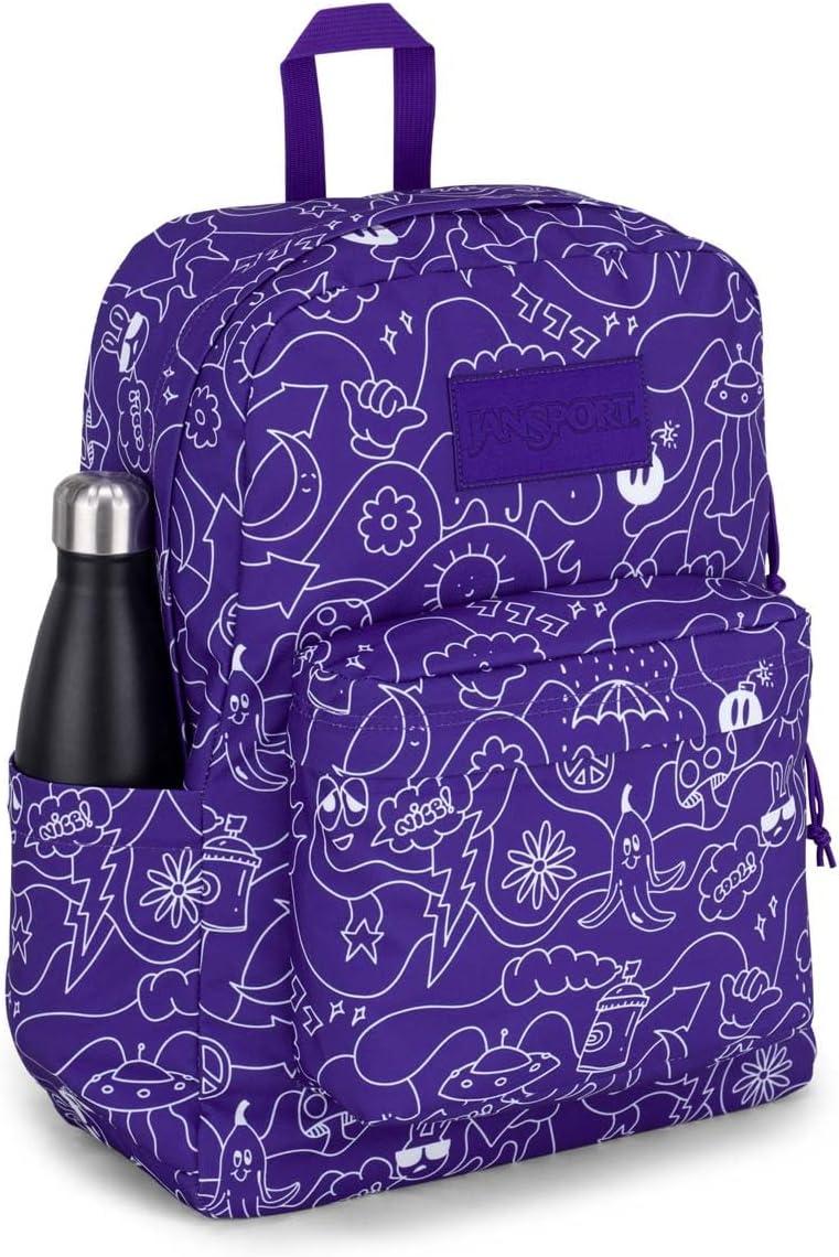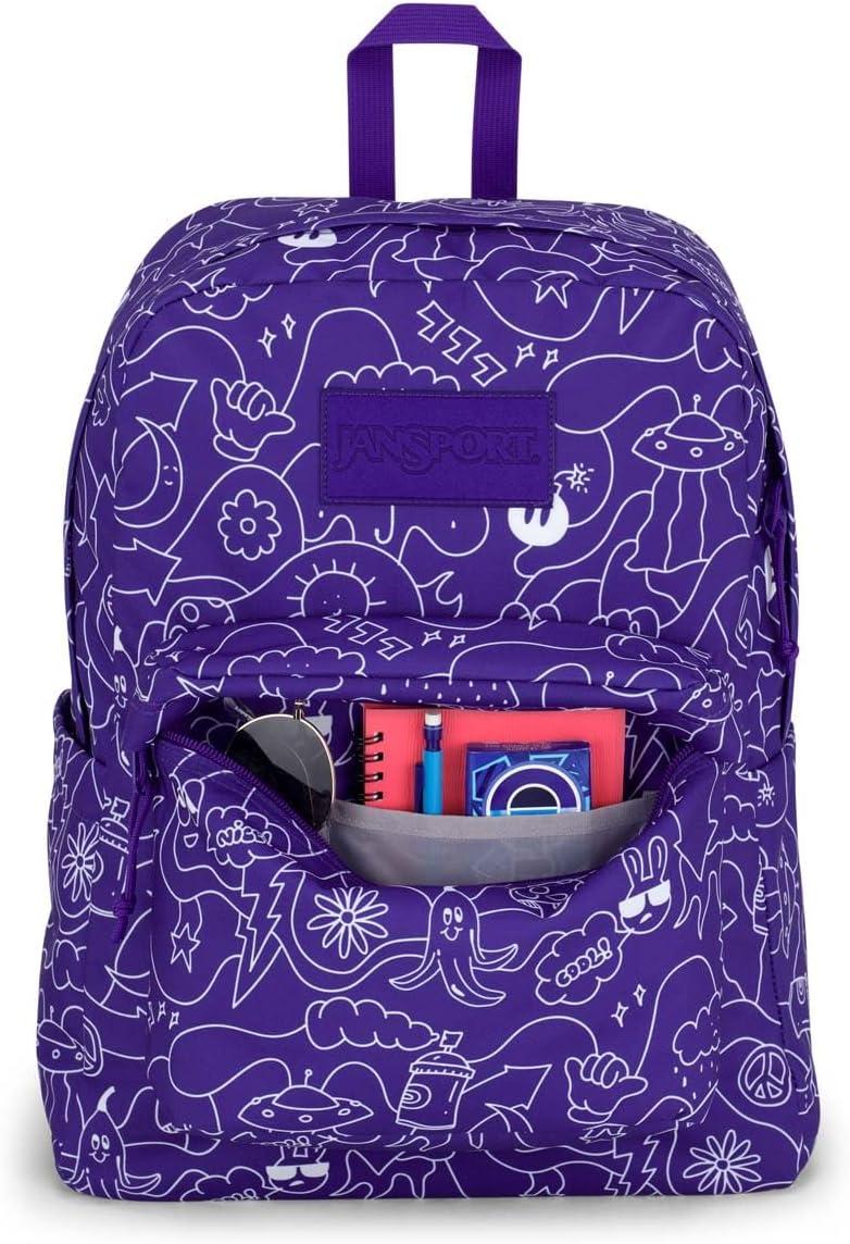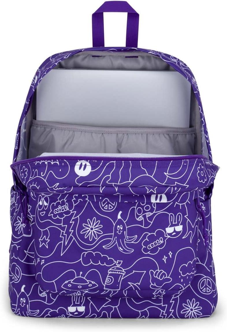 JanSport SuperBreak Plus Backpack with Padded 15-inch Laptop Sleeve and Integrated Bottle Pocket – Spacious and Durable Daypack for Work and Travel – Army Green(Dub Doodle Purple)