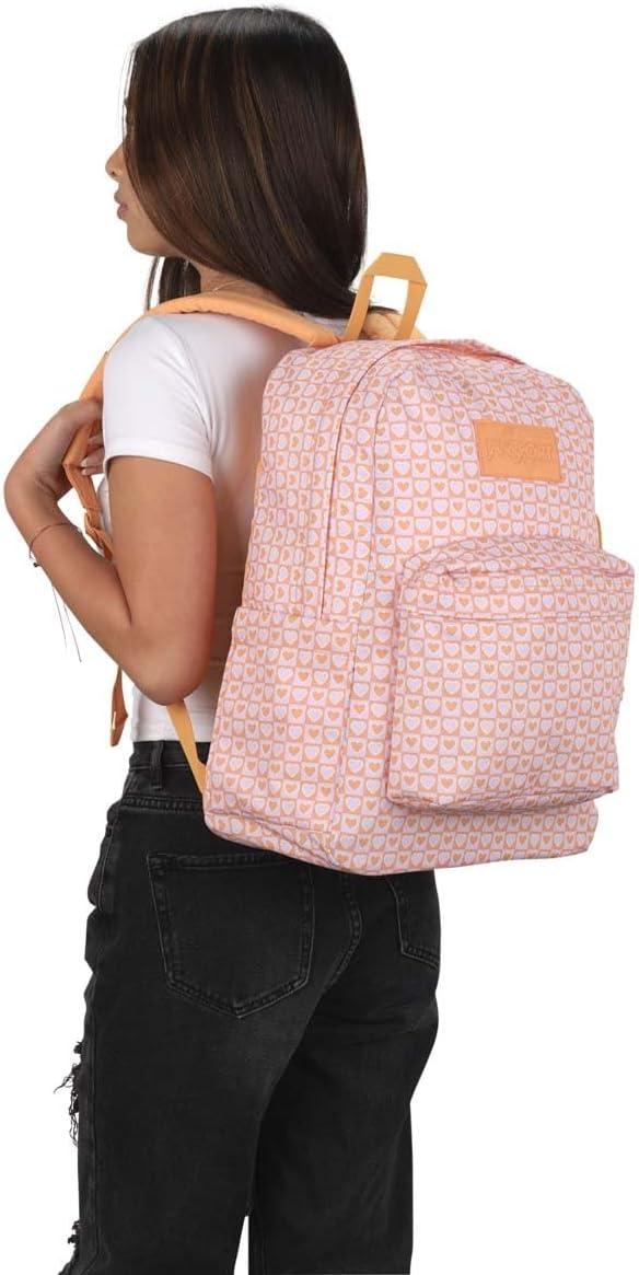 JanSport SuperBreak Plus Backpack with Padded 15-inch Laptop Sleeve and Integrated Bottle Pocket – Spacious and Durable Daypack for Work and Travel – Army Green(Hyped Hearts Pink)