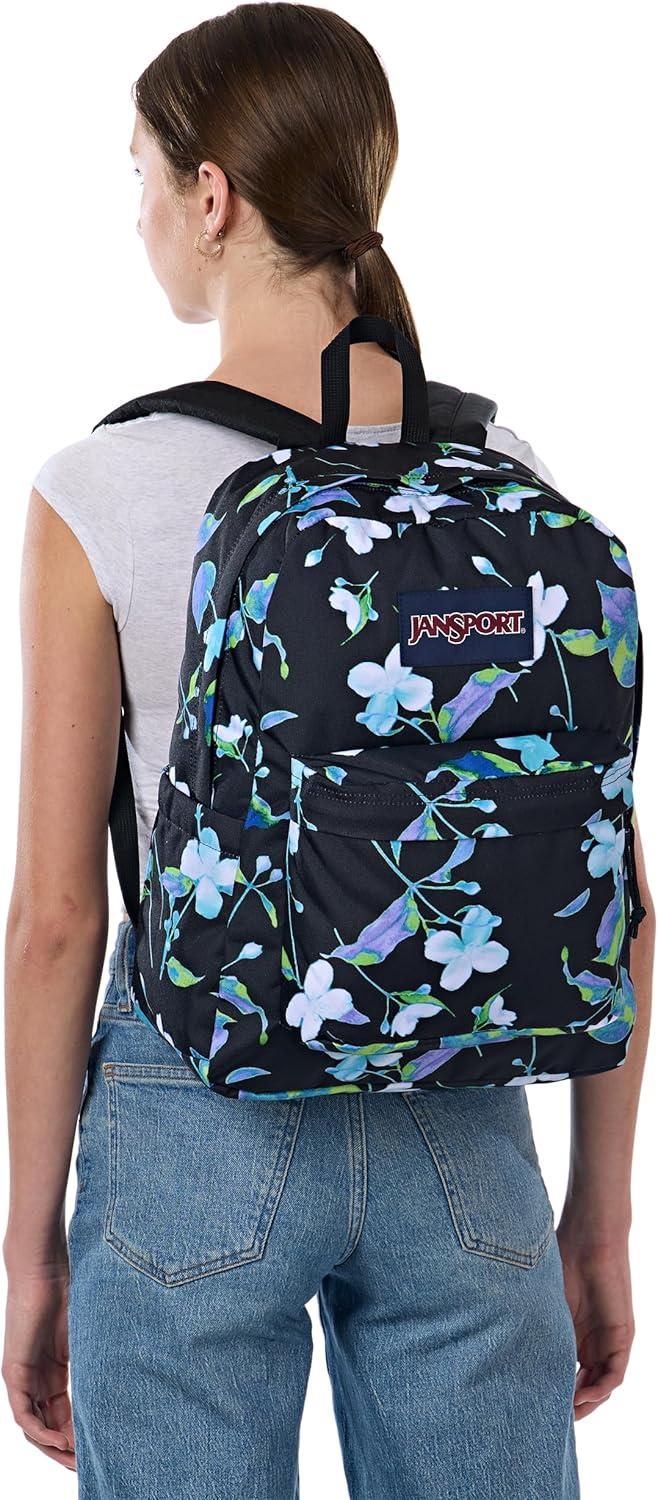 JanSport SuperBreak Plus Backpack with Padded 15-inch Laptop Sleeve and Integrated Bottle Pocket – Spacious and Durable Daypack for Work and Travel – Black(Punk Petals)